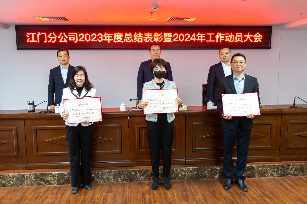 江门分公司党委委员、副总经理张斌宣读了省公司下发供应链管理江门分公司全省第一名的表扬信和《江门分公司关于表彰2023年度先进单位和先进工作者的决定》,党委领导班子成员为受表彰的代表颁奖。其中五位先进代表分别发言,分享工作经验,交流心得体会。