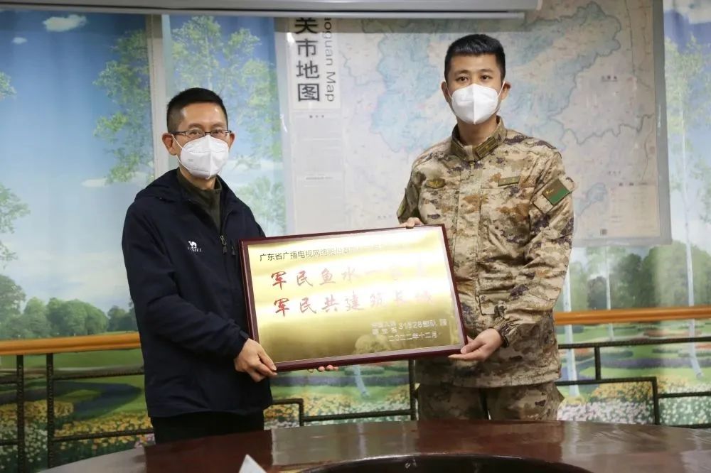 为感谢韶关taptap点点官方网站网络支持部队建设,特别是深化有线电视服务工作,部队代表向韶关taptap点点官方网站网络赠送“军民鱼水一家亲 军民共建筑长城”牌匾。