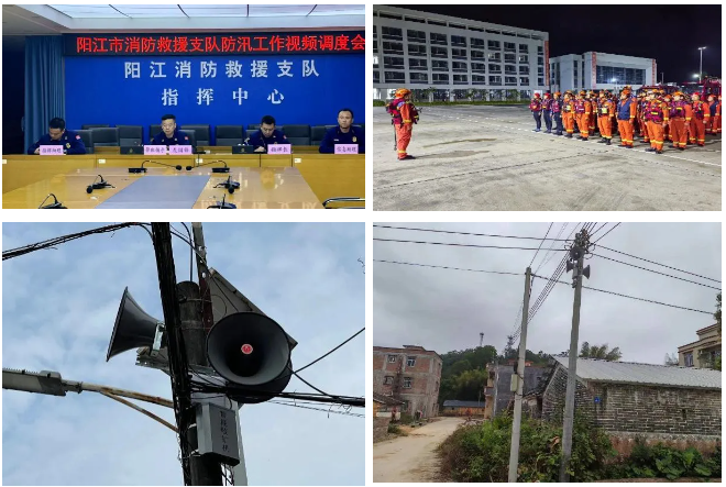 汛期中,根据省消防救援总队应急预案要求,阳江市消防救援支队通过阳江分公司参与建设的应急广播系统及时接收上级命令,顺利在4月21日晚21:30前组建集结了一支抗洪抢险力量,随时奔赴外市增援,确保人民群众的生命安全。