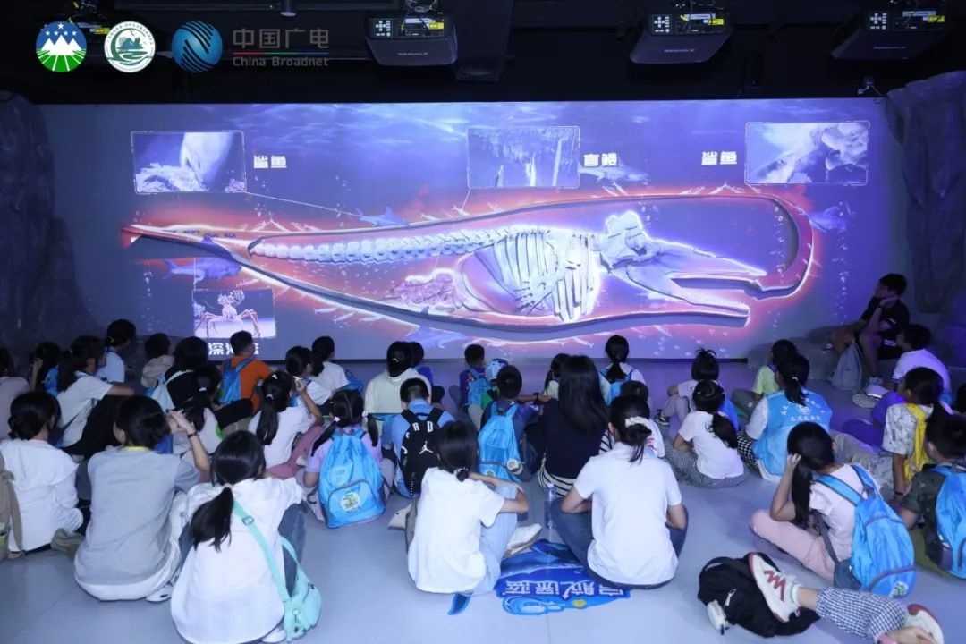 珠海规划展览馆作为开营首站,通过科技与艺术相结合的方式,向青少年们生动展示了珠海城市发展的历程与绿色生态规划成果。在南方海洋科学与工程广东省实验室,学员们通过卫星、无人机、雷达等立体观测模型,直观了解海洋科研前沿装备与技术,并通过多媒体展示和模拟场景,深入认识了深海环境的奥秘。特别是“鲸落”光影演绎和“珠海琴”智能养殖平台等展示,多维度呈现了珠海在海洋经济、生态治理等领域的创新成果。在气象科普馆,学员们化身“小小预报员”,通过卫星云图、数值预报等动态演示,深入了解现代气象预报科学,并在观测场亲身体验风向风速仪、百叶箱等设备操作,深刻感受气象科技的魅力,在心中埋下探索科学、热爱自然的种子。